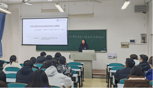 12月23日中午,计算机学院计算机科学系党支部书记李文杰教授在学院30210教室为我院学生作题为《中国式现代化建设新征程的行动纲领——深入学习贯彻党的二十届四中全会精神》的宣讲报告,“红色字节”学生党支部全体党员、本学期全体新发展党员学生一同参会学习。