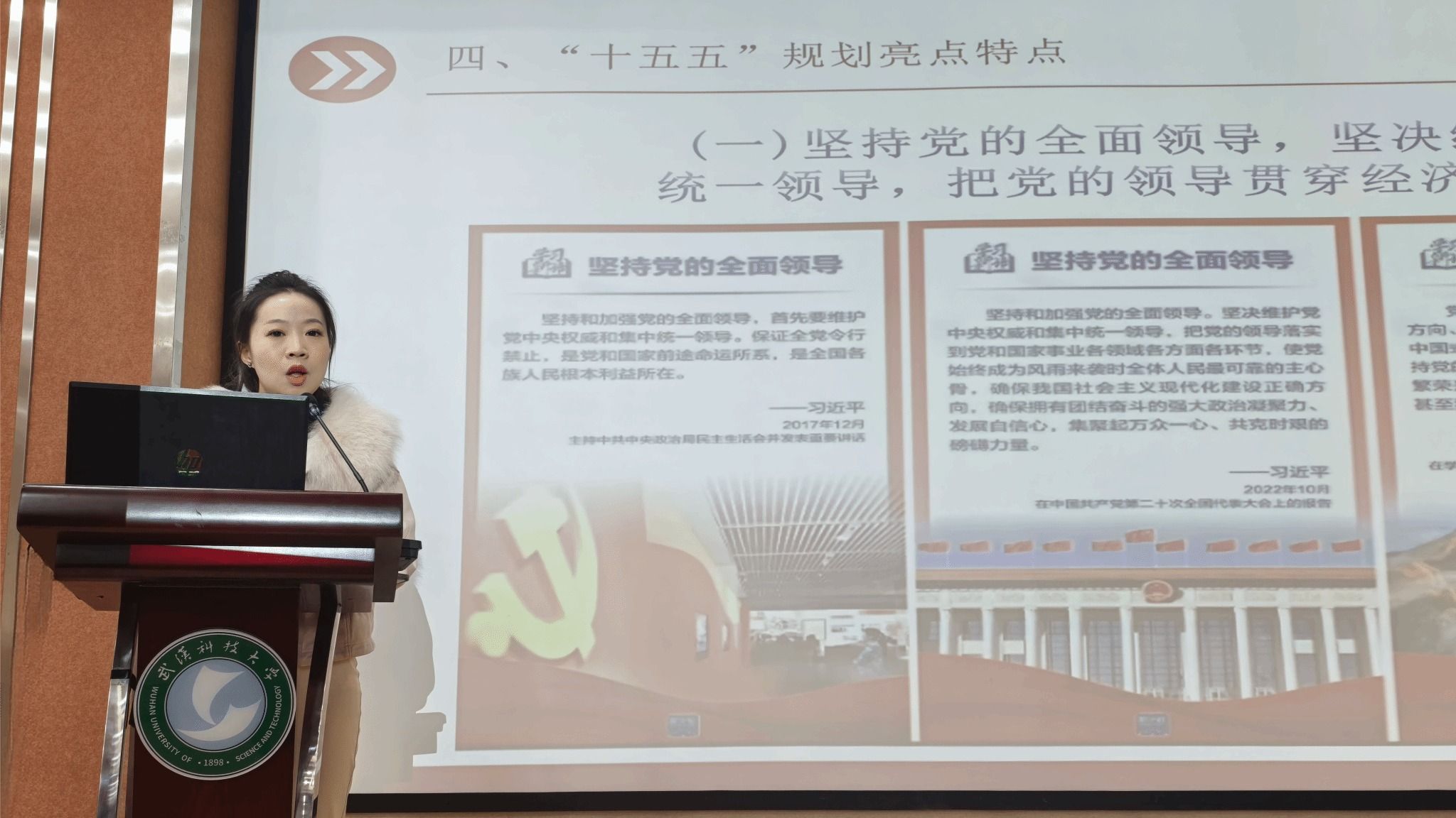 12月25日,学习贯彻党的二十届四中全会精神报告会在黄家湖校区教三楼404报告厅举行。校思想政治理论课教师宣讲团成员、马克思主义学院副教授陈希作专题宣讲。学院领导班子成员、师生党支部书记、学生党员骨干参加报告会,报告会由学院党委书记余淑均主持。